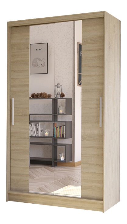 ZobrazitSatnikova skříň Coletta II (sonoma) o výšce 200 cm a hloubce 58 cm je prakticky a stylově zařízený nabytek, který se perfektně hodí do ložnice nebo obývacího pokoje. Kombinace barev se nese v klasickém stylu. Skříň je vyrobena z laminované desky (16mm) a má posuvné dveře se hliníkovými vodítky SEVROLL MICRA (doživotní záruka). Vrchní část dveří je z lesklého lacobel skla a na vnitřní straně jsou 2 policicky a 1 dělící složka. Skříň obsahuje také zrcadlo. Klika je ve formě hliníkové listy podél dveří. V balení jsou všechny potřebné díly pro montáž a montážní návod. Balik cislo 1 ma rozměry 206x64x9 cm/52 kg a balik cislo 2 ma rozměry 191x66x5 cm/30 kg.