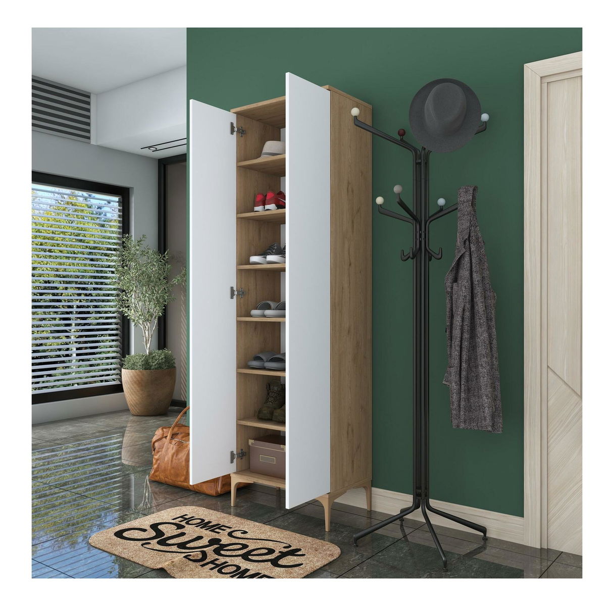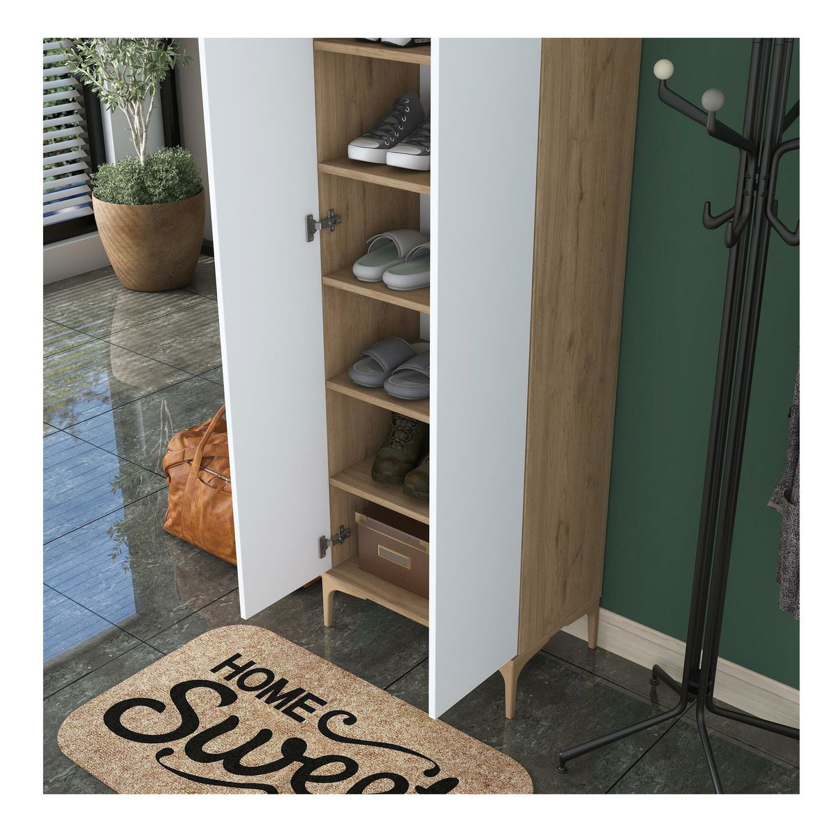 Šatní skříň Daboko 2 (ořech + bílá)
