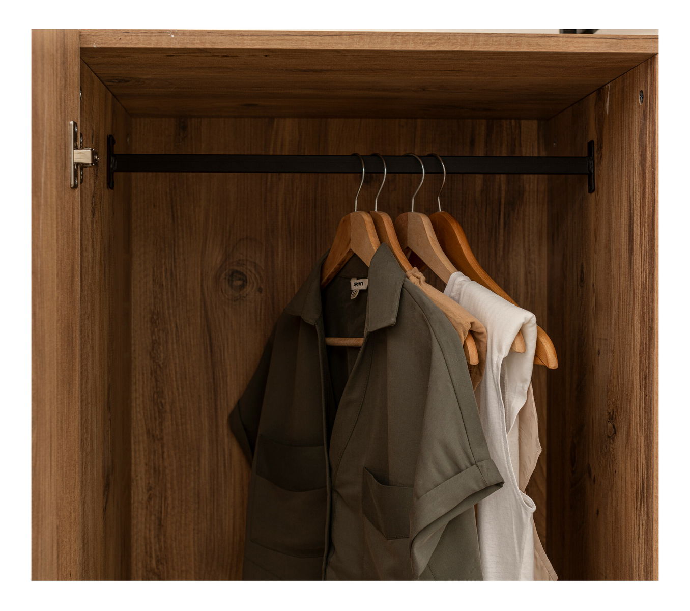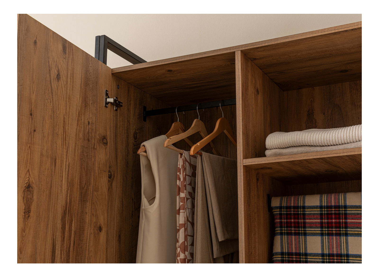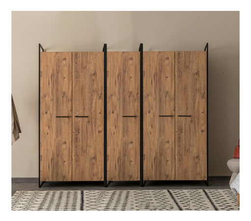 tloušťka: 18 mm, potřebná montáž PVC lemovek kovové nohy, skříň 01:00:00 šířka: 104 cm, výška: 225 cm, hloubka: 52 cm, (2 kusy) skříň 02:00:00 šířka: 64 cm, výška: 225 cm, hloubka: 52 cm, (1 kus) výška police: 29,9 cm, výška nohy: 10 cm, výška zásuvky: 20 cm