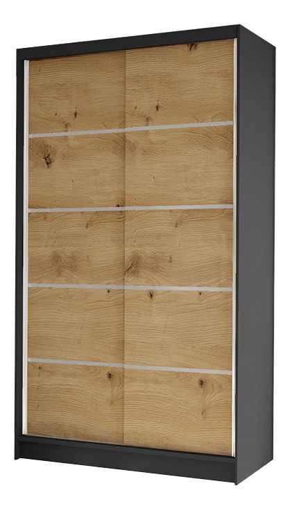 ZobrazitŠatní skříň Delana IV (černá + dub artisan) o výšce 200 cm a hloubce 58 cm je praktický a stylový kus nábytku, který se hodí do ložnice nebo obývacího pokoje. Tato skříň je vyrobena z laminované desky (16 mm) a kombinuje černou barvu s dubovou artizan barvou v klasickém stylu. Systém dveří je posuvný s hliníkovými vodítky SEVROLL MICRA, která mají doživotní záruku. Šatník nemá zrcadlo, ale má lesklé dveře na přední straně a hliníkovou lištu podél dveří ve formě kliky. Skříň obsahuje všechny potřebné prvky pro jednoduchou montáž a montážní návod. Rozměry balení č. 1 jsou 206x64x9 cm a váží 52 kg, zatímco rozměry balení č. 2 jsou 191x66x7 cm a váží 30 kg.