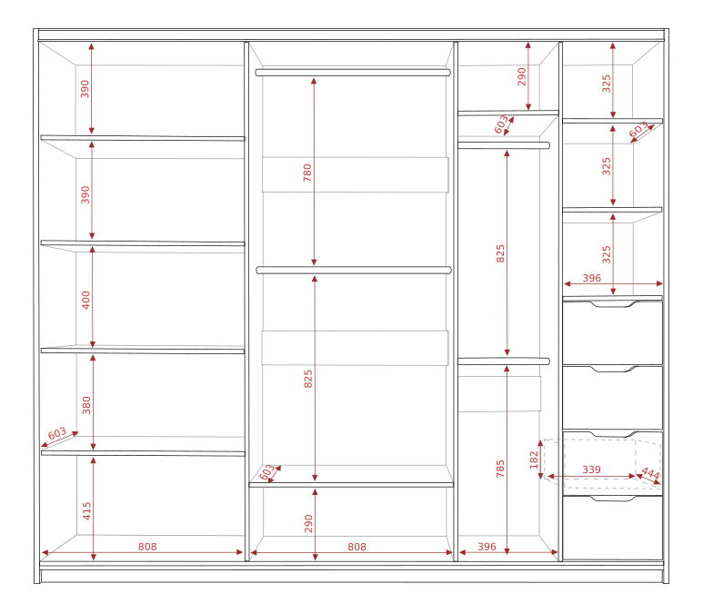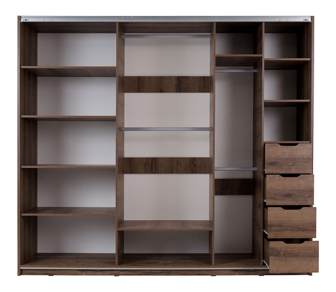 Šatní skříň Desayuno DSZ250 (dub monastery + lesk černý) vám nabízí elegantní, ale praktické úložné řešení pro vaši ložnici. Výška 215 cm a hloubka 68,5 cm poskytují dostatek místa pro vaši oblečení a doplňky. Skříň je vyrobena z kvalitní Desky DTD (22 mm) a Desky DTD (16 mm) se zesílenými ABS hranami pro delší životnost a ochranu před poškozením. Skříň má kovové úchyty, které dodávají skříni moderní vzhled. Skříň také obsahuje zrcadlo, které vám umožní rychlé a snadné převlečení. Skříň je balena v devíti balících s různými rozměry a hmotnostmi pro pohodlnou přepravu a montáž. Tato šatní skříň je ideální pro ty, kteří hledají praktické a kvalitní řešení pro jejich ložnici.