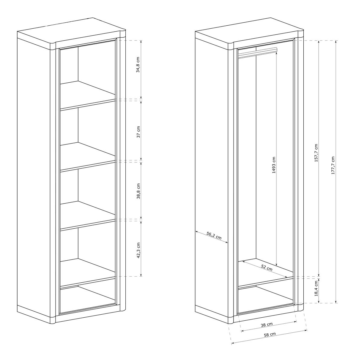 Jednoduchá šatní skříň z kolekce Daouglas s jedním šuplíkem a skříňkou, za kterou se nachází tyč, která umožňuje uspořádání prostoru skříně. Černé úchytky dokonale ladí s černými vložkami v podobě lišt. Tento kus nábytku dodá více elegance a stylu, než se zdá. Skvěle se hodí do obývacího pokoje, ale i chodby či ložnice, vytvoříte s ní spoustu aranžmá.