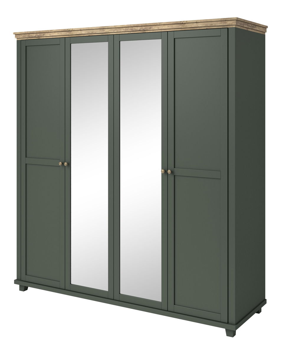 Šatní skříň Elvina S ZJU20 (zelená + dub lefkas tmavý) (se zrcadlem)