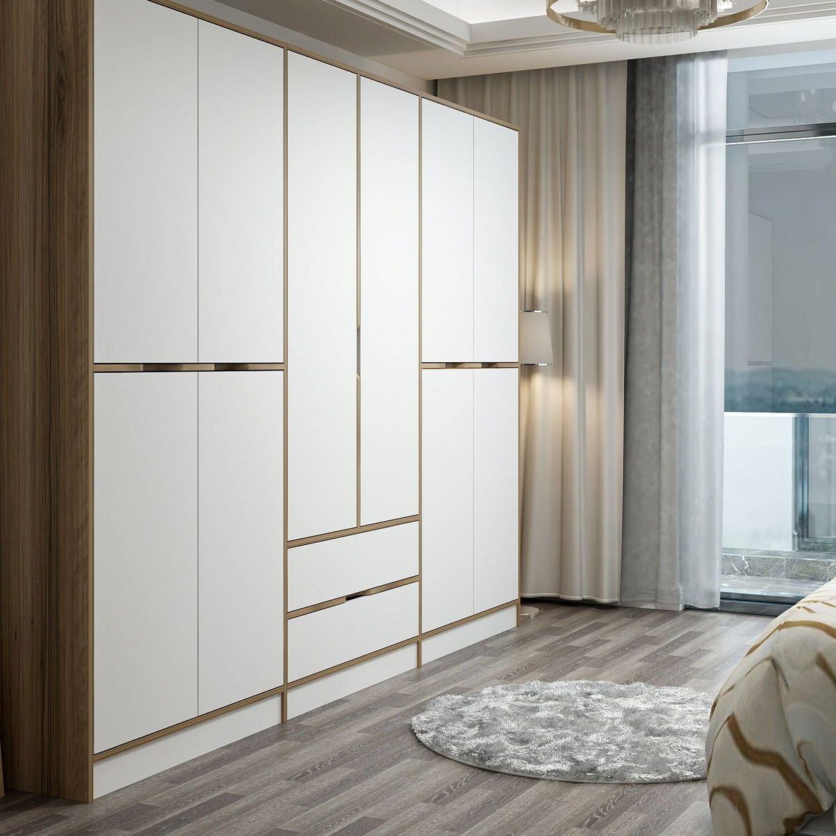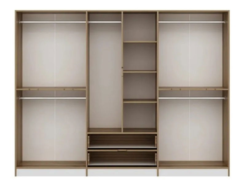 Šatní skříň - Erich (Bílá) je elegantní a praktická volba pro váš šatník. S výškou 210 cm, šířkou 270 cm a hloubkou 52 cm, tato bílá skříň poskytuje dostatek místa pro uspořádání a organizaci vašich oblečení, bot a doplňků. Se spoustou policek, závěsných tyčí a zásuvek, můžete snadno přizpůsobit interiér skříně podle svých potřeb. Kvalitní materiál a pevná konstrukce zaručují dlouhou životnost a odolnost. Šatní skříň - Erich je ideálním doplňkem pro váš domov, který kombinuje styl a funkčnost.