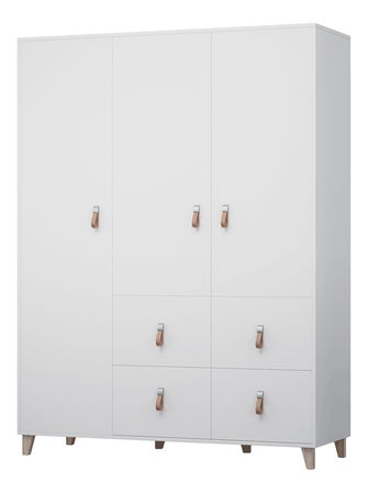 Šatní skříň Famira 3D (bílá) je ideálním řešením pro ukládání vaší oblečení a doplňků. Skříň má výšku 202 cm a hloubku 55 cm a je vyrobena z kvalitního DTD laminátu o tloušťce materiálu 16 mm as ABS hranami pro ochranu před poškozením. Šatní skříň má policovou část a věšákovou tyč, díky čemuž lze uložit i kabelovky a košile bez zmačkání. Kromě toho má skříň 4 zásuvky pro ukládání věcí, které nepotřebujete viset na ramínku. Kožené úchyty a dřevěné nožičky dotváří celkový design skříně. Šatní skříň Famira 3D (bílá) je ideální pro ty, kteří hledají kvalitní a praktické řešení pro své oblečení.