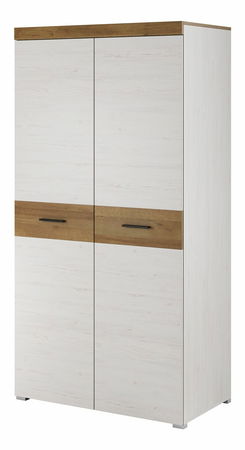 Šatní skříň, nabízí tyč na věšení oblečení a polici na odkládání věcí.