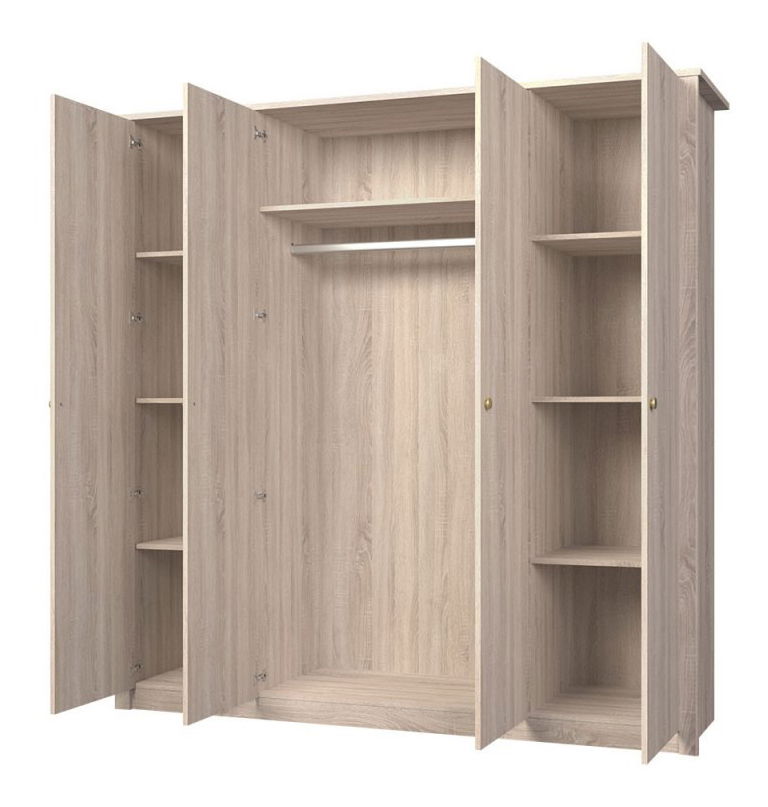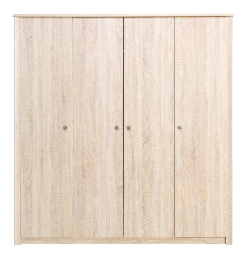 ZobrazitSpoustu oblečení si žádá velkou skříň. Díky této čtyřdveřové skříni pořádek v šatstvu hravě zvládnete. Za levými a pravými krajními dveřmi se nachází prostor, ve kterém jsou umístěny tři poličky. Za dvěma středními dveřmi je dlouhá věšáková tyč a nad ní umístěna police. Na krajích skříně je ozdobná lišta.