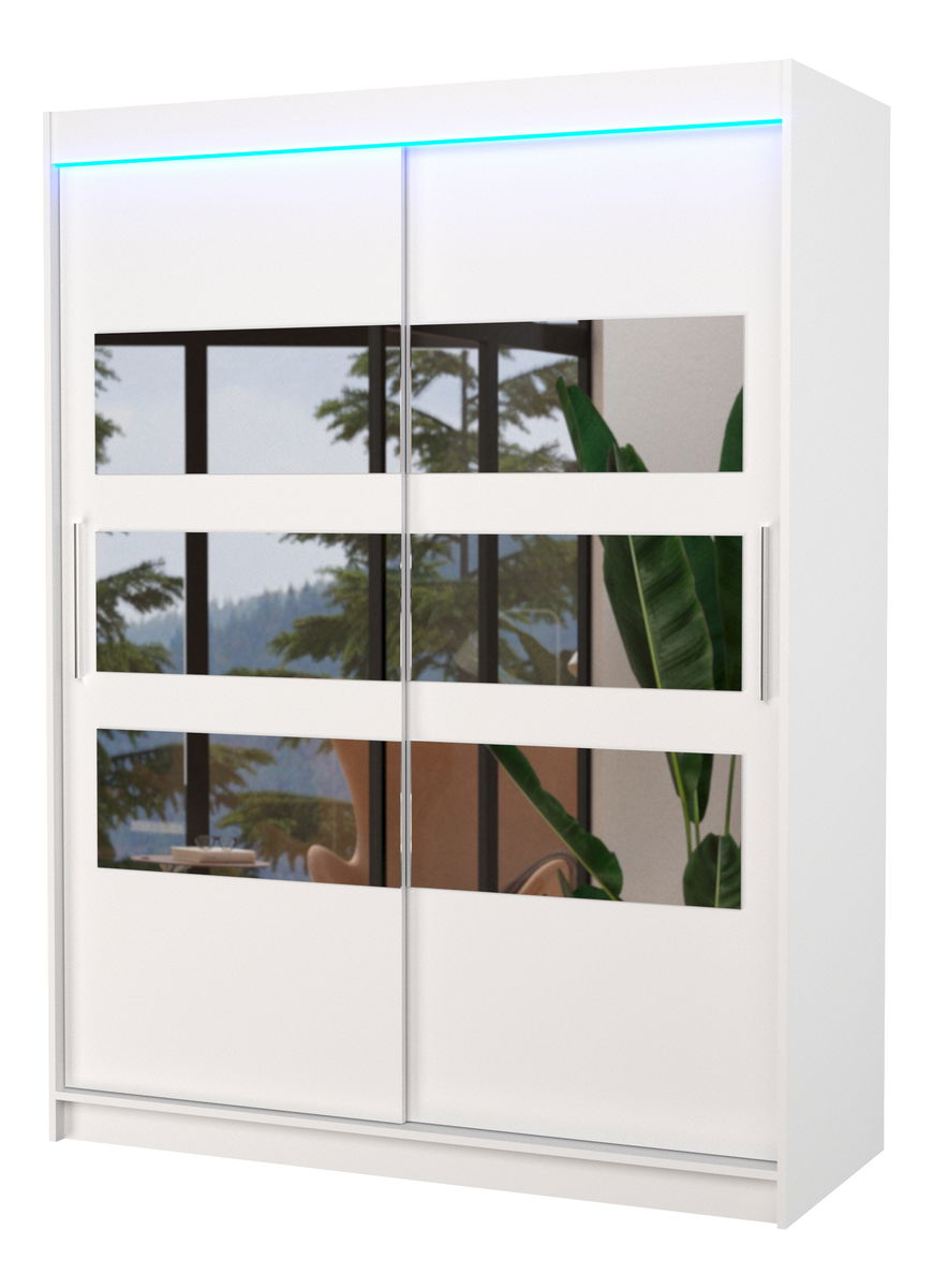 Šatní skříň Fioren (bílá) (s led osvětlením) (se zrcadlem)