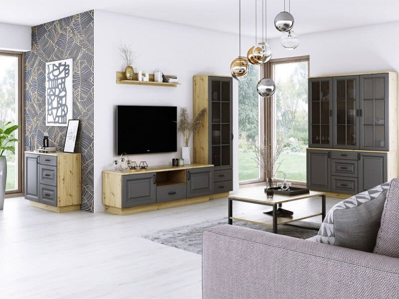 Jídelna Flaminia je kolekce nábytku do obývacího pokoje nebo jídelny ve skandinávském stylu. Vyznačuje se krásnou povrchovou úpravou v podobě frézovaných čel a barevného provedení grafit. Skříň Flaminia 2D2S je dvoudveřová šatní skříň se dvěma zásuvkami ve spodní části. Kombinace grafitu a dubu artisan upoutá pozornost nejednoho hosta ve vaší domácnosti. Skříň Flaminia 2D2S doporučujeme zkombinovat s nábytkem Flaminia stejné sestavy a vykouzlíte si tak vkusný a stylový domov.