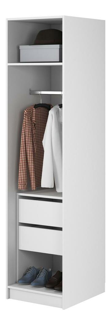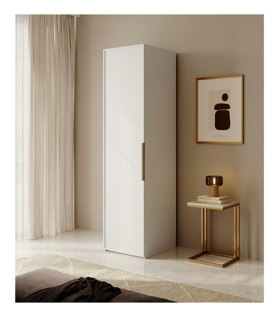 ZobrazitSníte o elegantním uložení oblečení? Hledáte praktický a elegantní šatník? Představujeme šatní skříň - spojení stylu a praktičnosti pro váš prostor Jednodveřová šatní skříň je elegantním a stylovým řešením, které bude skvělou alternativou šatní skříně. Jeho minimalistický design se perfektně hodí do moderního i klasického interiéru. Celé tělo je vyrobeno z kvalitní laminované dřevotřísky, která zaručuje odolnost a snadné čištění. Přední část skříně má jemné lemování, které jí dodává trojrozměrnost a zajímavý vizuální efekt. Přední strana má podélnou rukojeť z broušené oceli, která dodává rafinovaný vzhled a kontrastuje s matným tělem. Vnitřek šatní skříně je navržen tak, aby se do ní vešly různé kusy oblečení elegance a styl místnosti a tlumené barevné schéma dokonale ladí s různými dekorativními styly. Šatní skříň je nejen funkčním prvkem interiéru, ale také estetickým akcentem, který dokáže vnést do prostoru nádech modernosti a třídy. Součástí sestavy jsou dvě úchytky - zlatá a černá, takže se můžete rozhodnout, která se více hodí do vašeho interiéru. Kliku můžete vyměnit i při změně vnitřního uspořádání bez nutnosti výměny nábytku Detaily produktu: korpus vyrobený z laminované dřevotřískové desky o tloušťce 16 mm v bílé barvě 110 PE Kronospan, která je odolná vůči vlhkosti, teplotě a poškrábání, čela vyrobena z. deska MDF potažená bílou PVC fólií, zlaté a černé úchyty z broušené oceli, 46,5 cm dlouhá lišta umístěná ve výšce 147 cm od základny, rozměry police: šířka 46,5 cm / výška 30 cm / hloubka 55 cm, možnost výměny konfigurace uvnitř skříně ve stádiu montáže.