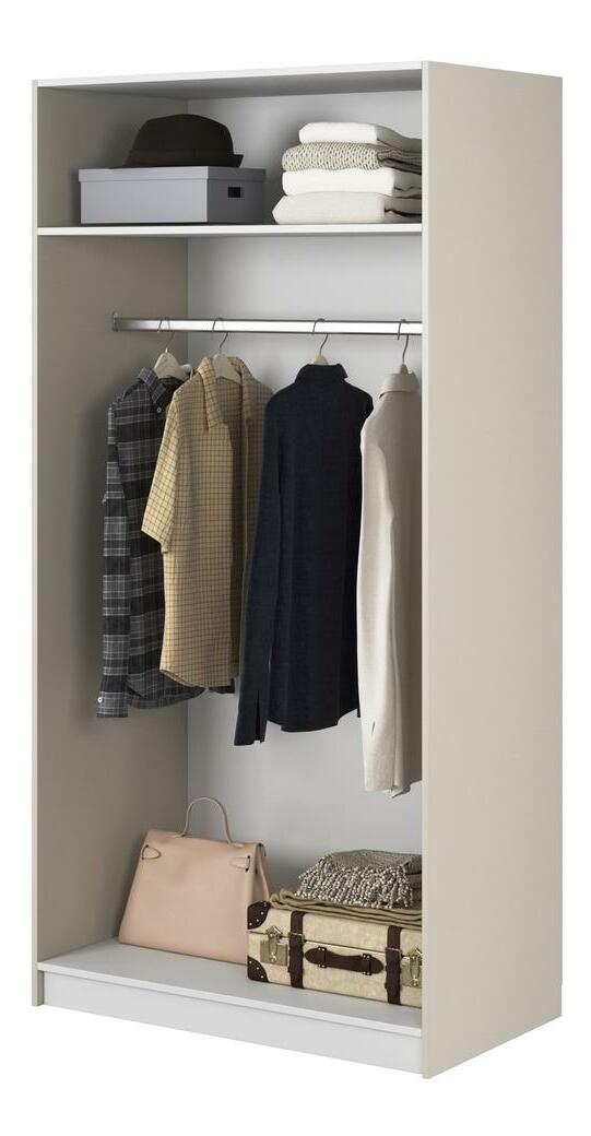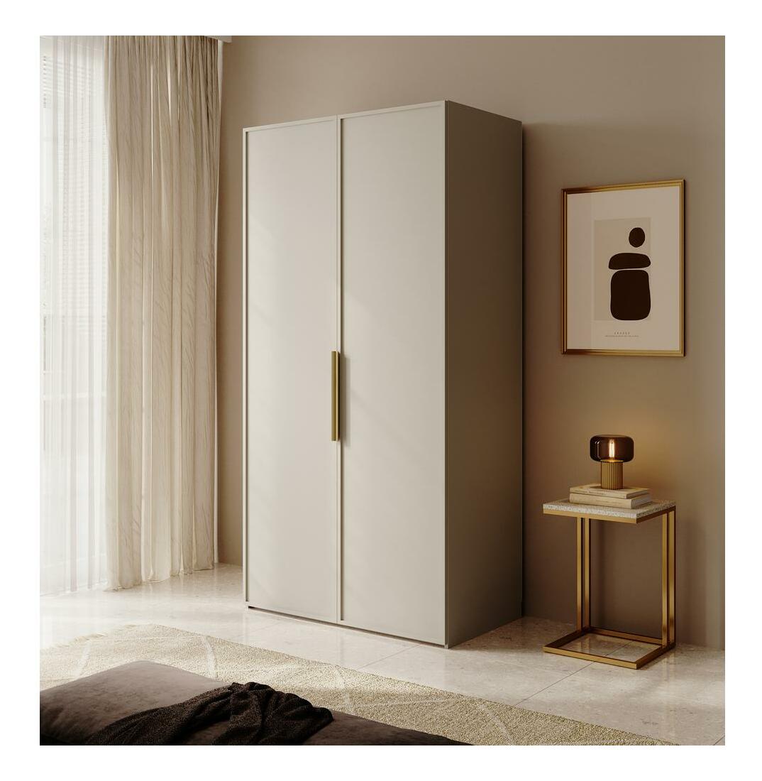 ZobrazitSníte o elegantním uložení oblečení? Hledáte praktický a elegantní šatník? Představujeme šatní skříň - spojení stylu a praktičnosti pro váš prostor Dvoudveřová šatní skříň je elegantní a stylové řešení, které bude skvělou alternativou šatní skříně. Jeho minimalistický design se perfektně hodí do moderního i klasického interiéru. Celé tělo je vyrobeno z kvalitní laminované dřevotřískové desky, která zaručuje odolnost a snadné čištění. Čela šatníku mají jemné lemování, které jim dodává trojrozměrnost a zajímavý vizuální efekt. Přední strana má podélnou rukojeť z broušené oceli, která dodává rafinovaný vzhled a kontrastuje s matným tělem. Vnitřek skříně je navržen tak, aby se do ní vešly různé kusy oblečení poskytuje další úložný prostor pro drobné doplňky nebo spodní prádlo, což umožňuje větší řád v šatníku Sloupek s policemi umožňuje efektivní třídění oblečení nebo doplňků. Klasická barva dodává místnosti eleganci a styl a tlumené barvy dokonale ladí s různými dekorativními styly. Šatní skříň je nejen funkčním prvkem interiéru, ale také estetickým akcentem, který dokáže vnést do prostoru nádech modernosti a třídy. Součástí sestavy jsou dvě úchytky - zlatá a černá, takže se můžete rozhodnout, která se více hodí do vašeho interiéru. Kličku můžete vyměnit i při změně vnitřního uspořádání bez nutnosti výměny nábytku Detaily produktu: korpus z laminované dřevotřískové desky o tloušťce 16 mm v barvě Cashmere 5981 BS Kronospan, která je odolná vůči vlhkosti, teplotě a poškrábání, čela. z deskové MDF potažené PVC fólií v barvě korpusu, zlaté a černé úchyty z broušené oceli, lišta dlouhá 46,5 cm umístěná ve výšce 147 cm od základny, rozměry police: šířka 46,5 cm / výška 30 cm / hloubka 55 cm, zásuvky umístěno na kulových vodítkách zajišťujících volné a plynulé vysouvání, rozměry zásuvky: šířka 37 cm / výška 13 cm / hloubka 38 cm, možnost změny konfigurace uvnitř skříně ve stadiu montáže.