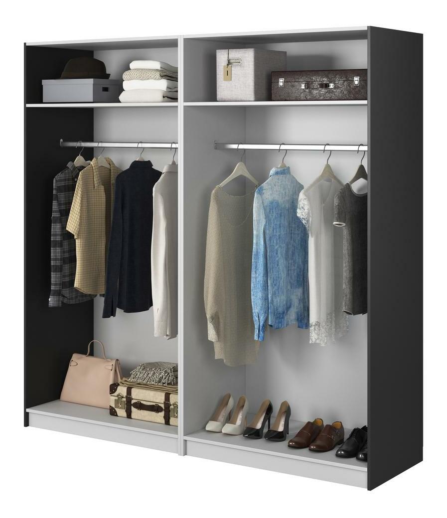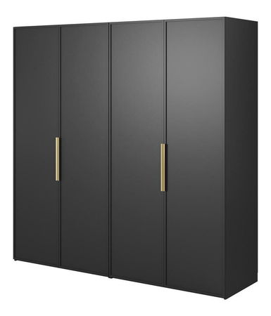 ZobrazitSníte o elegantním uložení oblečení? Hledáte praktický a elegantní šatník? Představujeme šatní skříň - spojení stylu a praktičnosti pro váš prostor Čtyřdveřová skříň je elegantním a stylovým řešením, které bude skvělou alternativou šatní skříně. Jeho minimalistický design se perfektně hodí do moderního i klasického interiéru. Celé tělo je vyrobeno z kvalitní laminované dřevotřískové desky, která zaručuje odolnost a snadné čištění. Čela šatníku mají jemné lemování, které jim dodává trojrozměrnost a zajímavý vizuální efekt. Přední strana má podélnou rukojeť z broušené oceli, která dodává rafinovaný vzhled a kontrastuje s matným tělem. Vnitřek skříně je navržen tak, aby se do ní vešly různé kusy oblečení poskytuje další úložný prostor pro drobné doplňky nebo spodní prádlo, což umožňuje větší řád v šatníku Sloupek s policemi umožňuje efektivní třídění oblečení nebo doplňků. Klasická barva dodává místnosti eleganci a styl a tlumené barvy dokonale ladí s různými dekorativními styly. Šatní skříň je nejen funkčním prvkem interiéru, ale také estetickým akcentem, který dokáže vnést do prostoru nádech modernosti a třídy. Součástí sestavy jsou dvě úchytky - zlatá a černá, takže se můžete rozhodnout, která se více hodí do vašeho interiéru. Kličku můžete vyměnit i při změně vnitřního uspořádání bez nutnosti výměny nábytku Detaily produktu: korpus vyrobený z laminované dřevotřísky tloušťky 16 mm v barvě Black 190 PE Kronospan, která je odolná vůči vlhkosti, teplotě a poškrábání, čela. z MDF desky potažené PVC fólií v barvě korpusu, zlaté a černé úchyty z broušené oceli, 96,5 cm / 46,5 cm dlouhá lišta umístěná ve výšce 147 cm od základny, rozměry police: šířka 46,5 / 96,5 cm / výška 30 cm / hloubka 55 cm, zásuvky umístěné na kulových vodítkách zajišťujících volné a plynulé vysouvání, rozměry zásuvky: šířka 37 cm / výška 13 cm / hloubka 38 cm, možné změny konfigurace uvnitř skříně ve stádiu montáže.