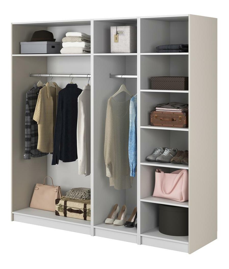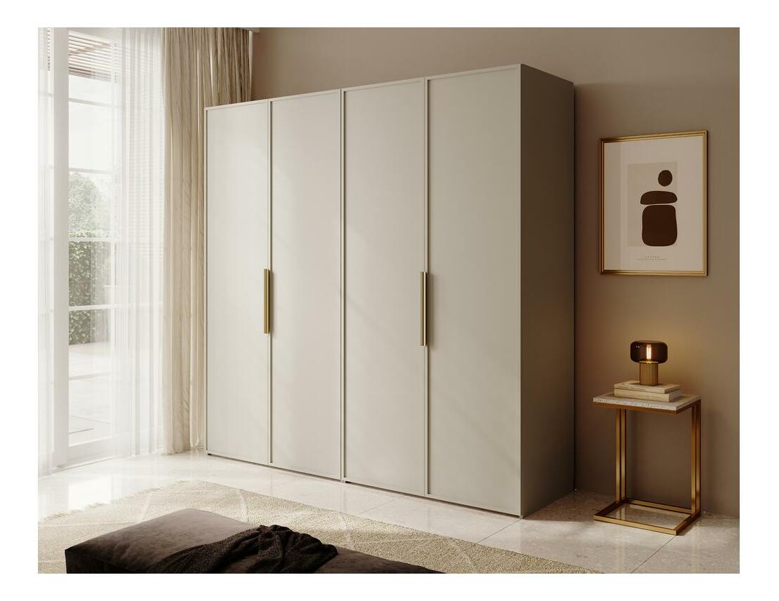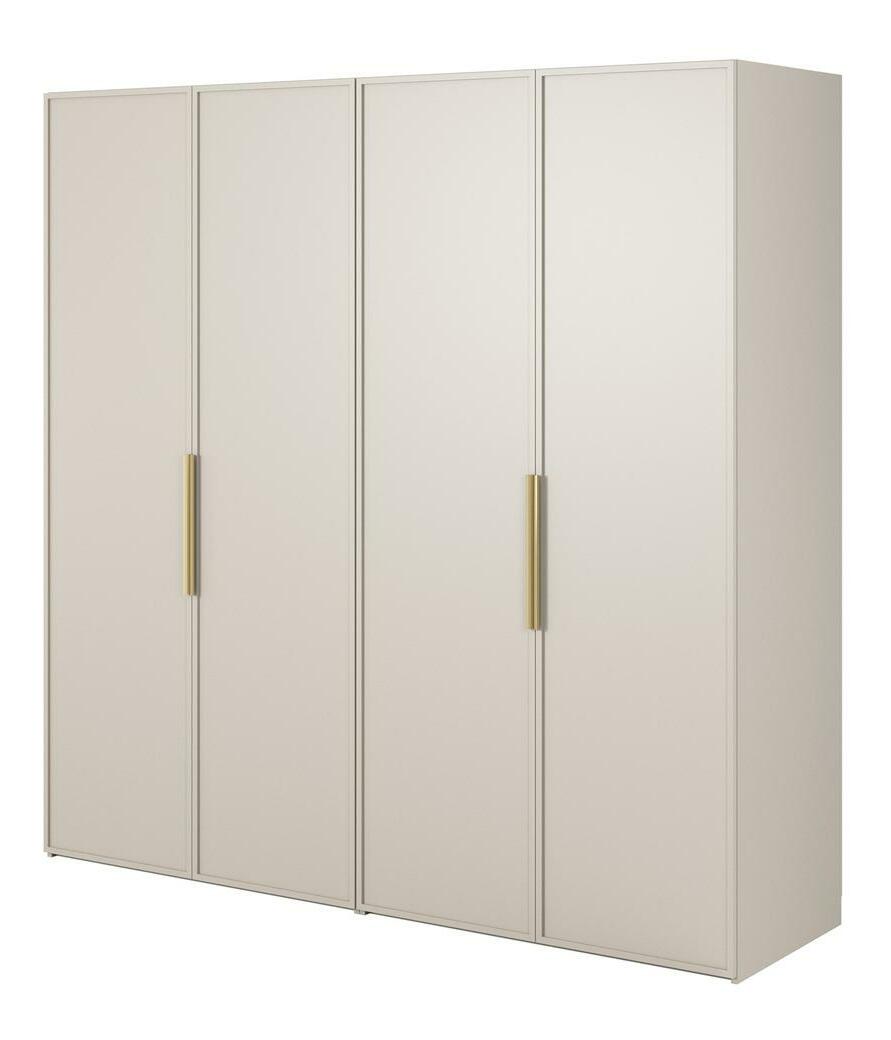 Sníte o elegantním uložení oblečení? Hledáte praktický a elegantní šatník? Představujeme šatní skříň - spojení stylu a praktičnosti pro váš prostor Čtyřdveřová skříň je elegantním a stylovým řešením, které bude skvělou alternativou šatní skříně. Jeho minimalistický design se perfektně hodí do moderního i klasického interiéru. Celé tělo je vyrobeno z kvalitní laminované dřevotřískové desky, která zaručuje odolnost a snadné čištění. Čela šatníku mají jemné lemování, které jim dodává trojrozměrnost a zajímavý vizuální efekt. Přední strana má podélnou rukojeť z broušené oceli, která dodává rafinovaný vzhled a kontrastuje s matným tělem. Vnitřek skříně je navržen tak, aby se do ní vešly různé kusy oblečení poskytuje další úložný prostor pro drobné doplňky nebo spodní prádlo, což umožňuje větší řád v šatníku Sloupek s policemi umožňuje efektivní třídění oblečení nebo doplňků. Klasická barva dodává místnosti eleganci a styl a tlumené barvy dokonale ladí s různými dekorativními styly. Šatní skříň je nejen funkčním prvkem interiéru, ale také estetickým akcentem, který dokáže vnést do prostoru nádech modernosti a třídy. Součástí sestavy jsou dvě úchytky - zlatá a černá, takže se můžete rozhodnout, která se více hodí do vašeho interiéru. Kličku můžete vyměnit i při změně vnitřního uspořádání bez nutnosti výměny nábytku Detaily produktu: korpus z laminované dřevotřískové desky o tloušťce 16 mm v barvě Cashmere 5981 BS Kronospan, která je odolná vůči vlhkosti, teplotě a poškrábání, čela. z MDF desky potažené PVC fólií v barvě korpusu, zlaté a černé úchyty z broušené oceli, 96,5 cm / 46,5 cm dlouhá lišta umístěná ve výšce 147 cm od základny, rozměry police: šířka 46,5 / 96,5 cm / výška 30 cm / hloubka 55 cm, zásuvky umístěné na kulových vodítkách zajišťujících volné a plynulé vysouvání, rozměry zásuvky: šířka 37 cm / výška 13 cm / hloubka 38 cm, možné změny konfigurace uvnitř skříně ve stádiu montáže.
