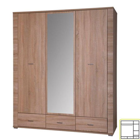 Šatní skříň Gary Typ 02 3D3S je ideálním řešením pro ty, kteří hledají praktické a zároveň stylové úložné řešení. Tato třídílná šatní skříň s věšákovou tyčí a zrcadlem slibuje dostatek místa pro uložení vašich nejoblíbenějších kousků oblečení. Kromě toho disponuje také třemi hlubokými zásuvkami a třemi úzkými vysokými zásuvkami, které vám poskytnou více než dost místa pro uskladnění doplňků a dalších věcí. Skříň je vyrobena z kvalitní laminované DTD v odstínu svěžího a světlého Dubu Sonoma, který se bude skvěle hodit do světlých a větších prostor. Hrany jednotlivých komponent jsou ukončeny vroubkovanou lištou, což dodává skříni ještě větší eleganci. Rozměry skříně jsou 160,8 x 192 x 55 cm a dodává se v demontu. Tloušťka materiálu korpusu je 16 mm, vrchní a spodní desky 22 mm. Šatní skříň Gary Typ 02 3D3S je proto skvělou volbou pro ty, kteří hledají kvalitní a elegantní řešení pro svou ložnici, obývací pokoj nebo předsíň.