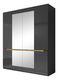 Elegantní designová moderní čtyř dveřová šatní skříň se dvěma zrcadly. Poskytuje mnoho úložného prostoru díky policím i věšákové tyči pro zavěšení vašeho oblečení. Velká zrcadlová část opticky zvětší váš interiér.