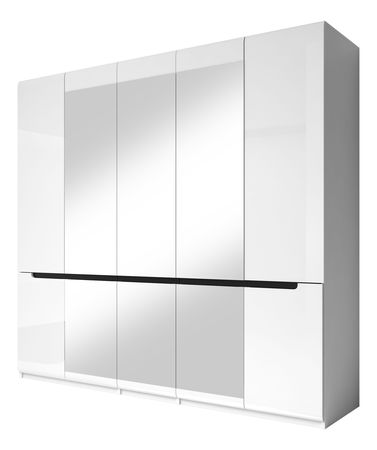 Šatní skříň Hayle Typ 21 (bílá + bílý vysoký lesk)