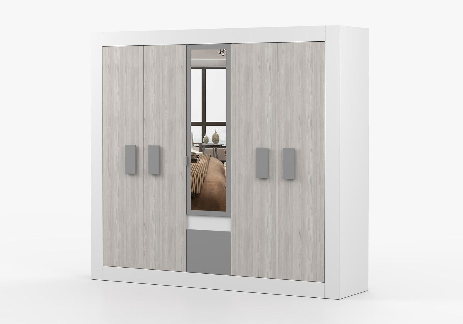 Šatní skříň Hyllo (bílá + kathult + grafit + zrcadlo)