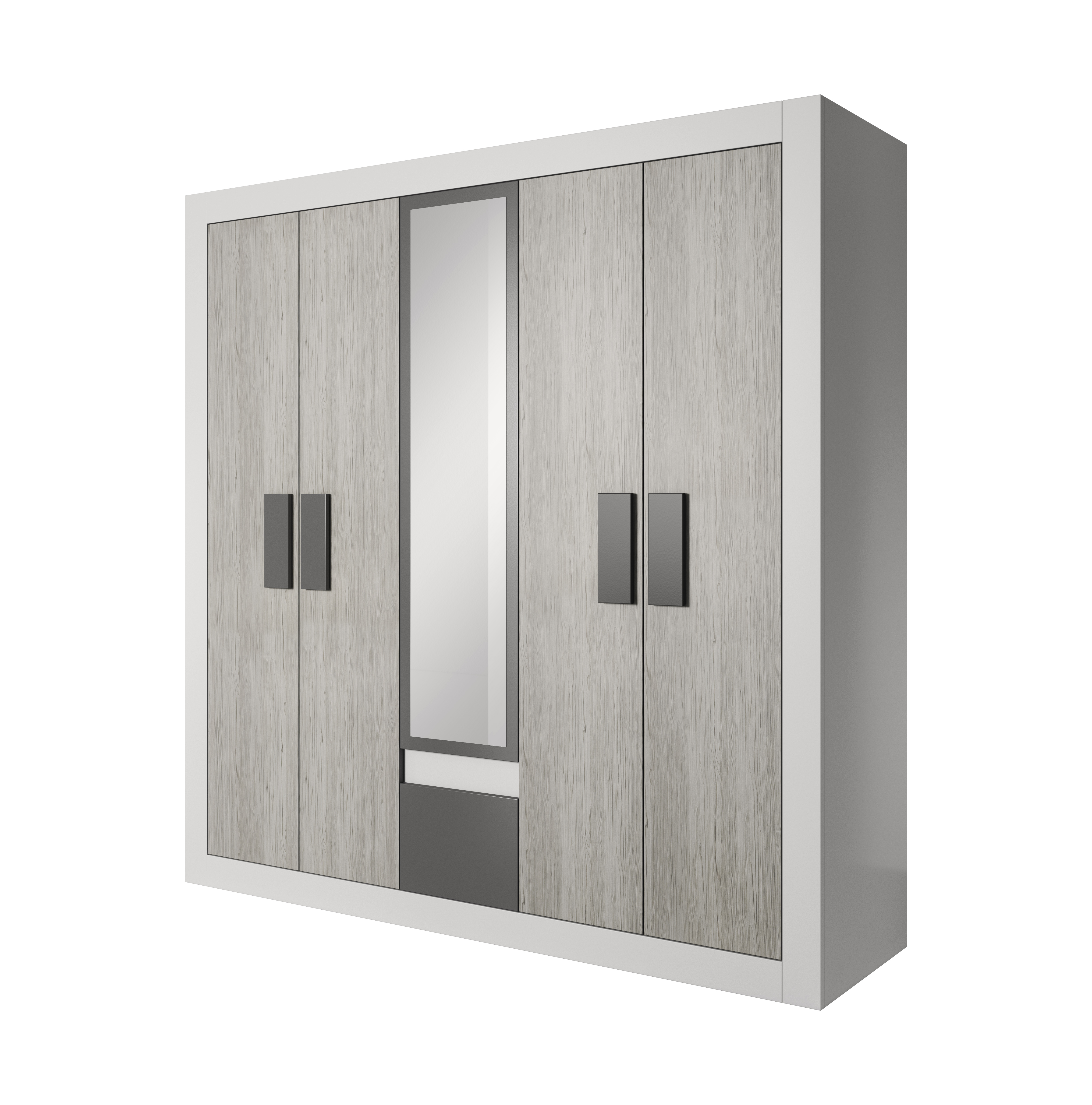 Šatní skříň Hyllo o výšce 210 cm a hloubce 57 cm je ideálním doplňkem vašeho interiéru. Tato bílá skříň s kombinací kathult, grafitu a zrcadla vám poskytne dostatek úložného prostoru a zároveň dodá vašemu pokoji moderní vzhled. Vnější materiál je vyroben z 16 mm dřevotřísky, vnitřní materiál je také z 16 mm dřevotřísky a je doplněn ABS hranami tloušťky 0,5 mm. Šatní skříň Hyllo je vybavena dřevěnými úchyty, což zaručuje udržení jednotného designu a kvality celého produktu. S touto skříní získáte praktický a moderní kus nábytku, který bude skvěle posloužit vašim potřebám a zároveň zkrášlí váš interiér.