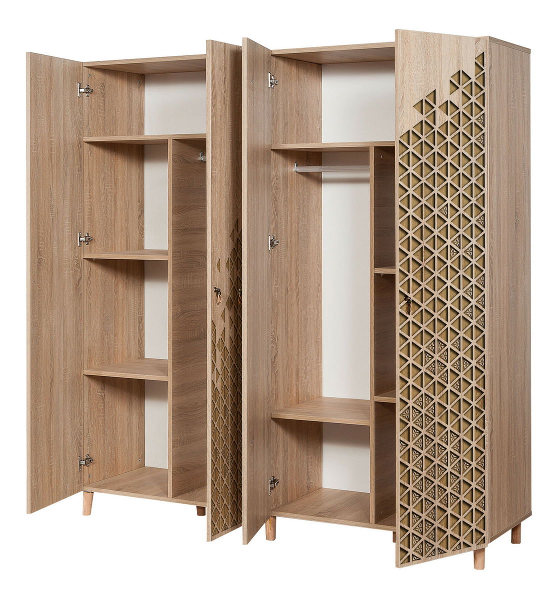 tloušťka: 18 mm, habrové nohy, kovové rukojeti, uv nátěr, šířka: 180 cm, výška: 192 cm, hloubka: 52 cm, velikost horní police: šířka: 90 cm, výška: 30 cm, výška boční police: 47 cm, výška nohou: 10 cm