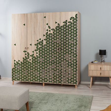 tloušťka: 18 mm, habrové nohy, kovové rukojeti, uv nátěr, šířka: 180 cm, výška: 192 cm, hloubka: 52 cm, velikost horní police: šířka: 90 cm, výška: 30 cm, výška boční police: 47 cm, výška nohou: 10 cm