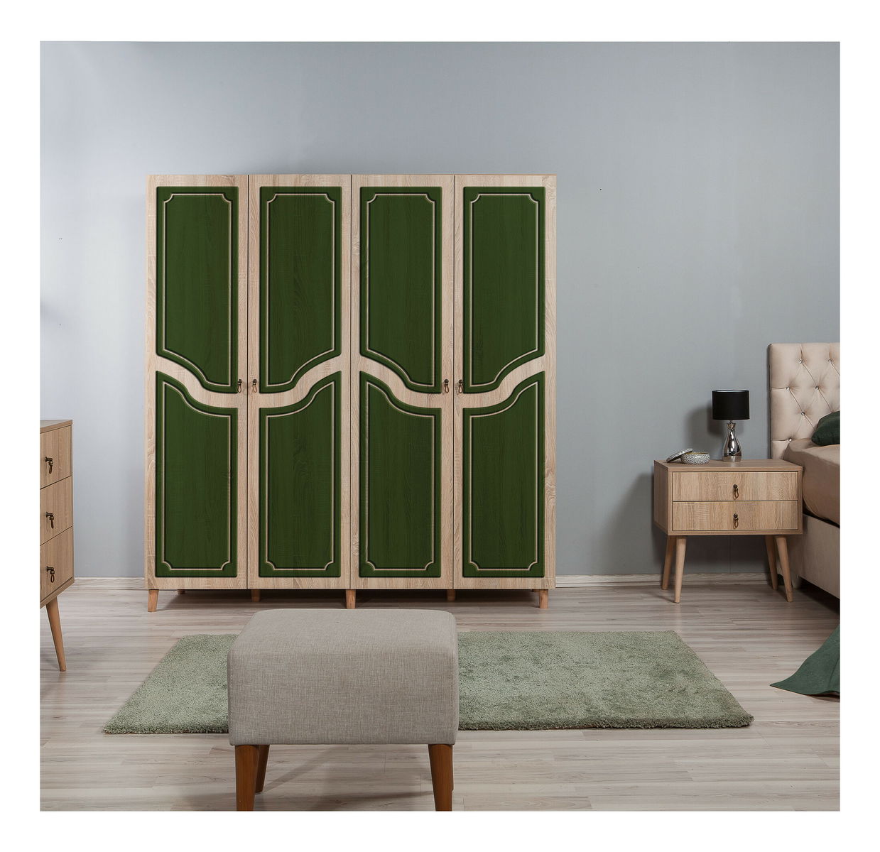 tloušťka: 18 mm, habrové nohy, kovové rukojeti, uv nátěr, šířka: 180 cm, výška: 192 cm, hloubka: 52 cm, velikost horní police: šířka: 90 cm, výška: 30 cm, výška boční police: 47 cm, výška nohou: 10 cm