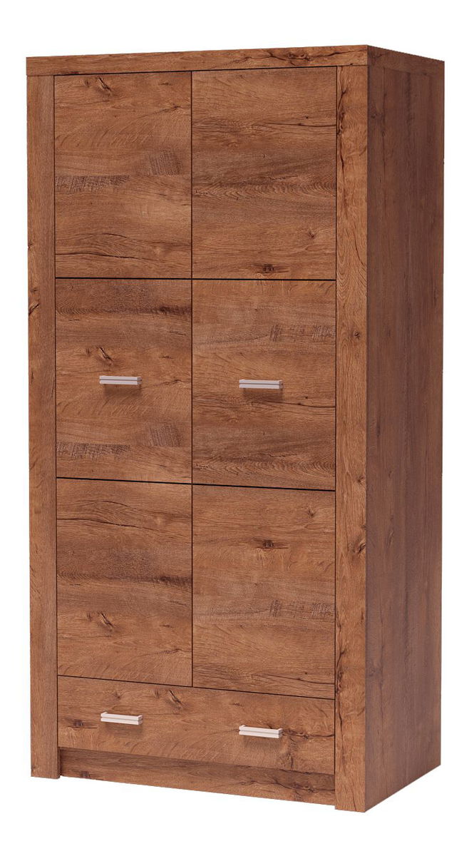 ZobrazitJednoduchá velká dvoudveřová šatní skříň s kovovými úchyty. Součástí je 58 cm hluboká zásuvka. V šatníku je také 92 cm dlouhá věšáková tyč, která je ideální pro rozvinutí dostupného prostoru, zavěšení oblečení a uspořádání. Tato skříň určitě vyplní prázdné místo v naší domácnosti, vytvoří s ní spoustu zajímavých aranžmá a překvapí hosty svým originálním střihem.