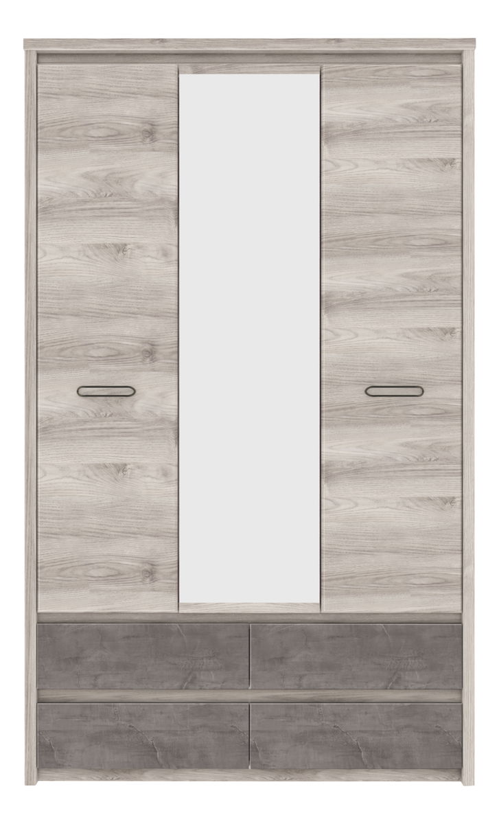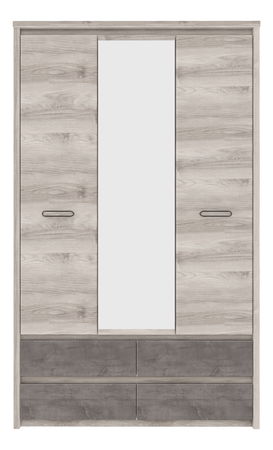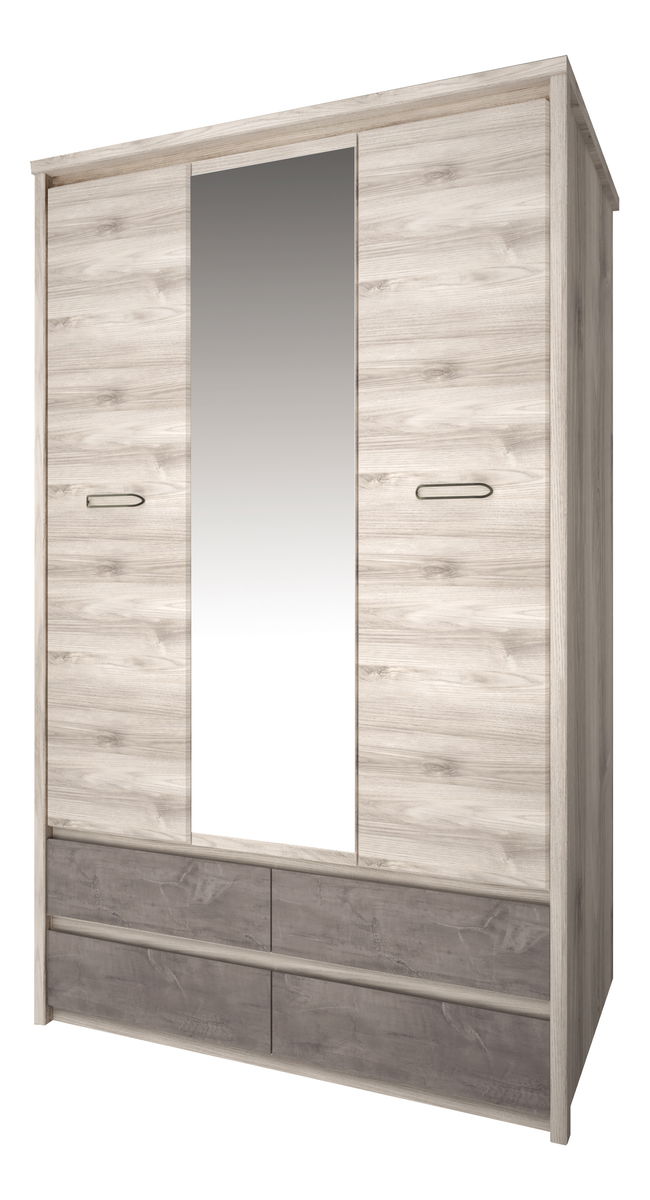 Šatní skříň Jolene 3D4S (se zrcadlem) (kaštan nairobi + onyxová)