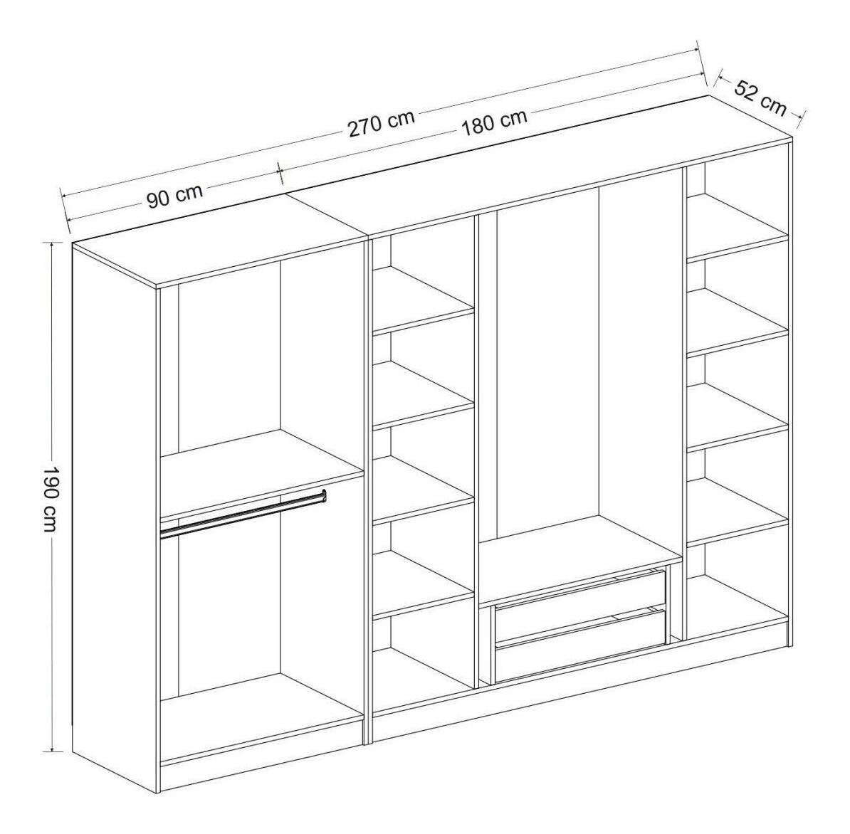 tloušťka: 18 mm, šířka: 225 cm, výška: 210 cm, hloubka: 52 cm