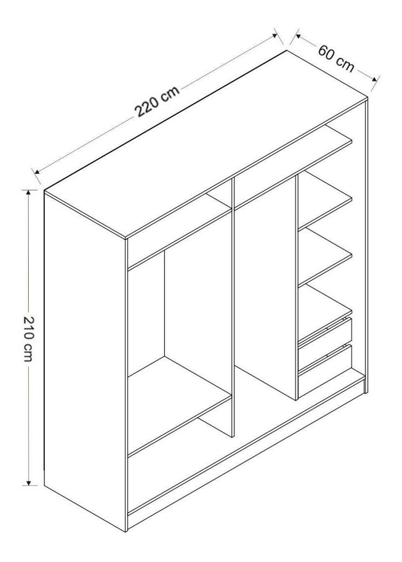 tloušťka: 18 mm, šířka: 220 cm, výška: 210 cm, hloubka: 52 cm, četné police výška police: 34 cm
