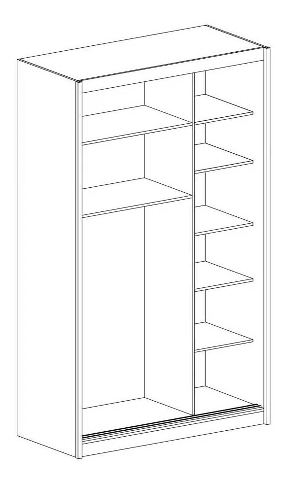 ZobrazitMenší, ale prostorná šatní skříň s posuvnými dveřmi. Je ideální do malých interiérů, díky své velké hloubce vám umožní uložit více věcí. Uvnitř je bohatě členěna na police, šatní část a zásuvky. Koupi této skříně určitě neobanujete.