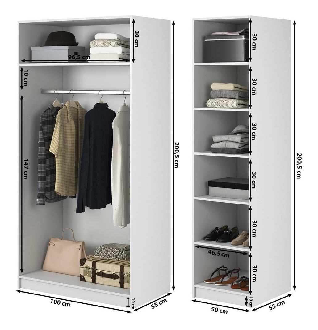 Sníte o elegantním uložení oblečení? Hledáte praktické a elegantní dotvoření vašeho šatníku? Představujeme šatní skříň – spojení stylu a praktičnosti pro váš prostor Šatní skříň je elegantním a stylovým řešením, které bude skvělou volbou i pro malé skříně. Jeho minimalistický design se perfektně hodí do moderního i klasického interiéru. Celé tělo je vyrobeno z kvalitní laminované dřevotřískové desky, která zaručuje odolnost a snadné čištění. Vnitřní prostor je navržen tak, aby se do něj vešly různé kusy oblečení a doplňků, na tyči můžete zavěsit oblečení, abyste jej udrželi v dobrém stavu, zatímco horní police vám umožní uložit méně často používané oblečení nebo doplňky efektivně třídit oblečení nebo přísady. Klasická a univerzální barva dodává místnosti eleganci a styl a dokonale ladí s různými dekorativními styly. Správně nakonfigurovaný šatník vám umožní snadno se zbavit chaosu a udržovat pořádek. V této šatní skříni je funkčnost stejně důležitá jako vzhled, proto ji můžete umístit i na viditelná místa bez obav z nepořádku v interiéru. Detail produktu: korpus vyrobený z laminované dřevotřísky tloušťky 16 mm v barvě White 110 PE Kronospan, která je odolná. vlhkosti, teplotě a poškrábání, lišta dlouhá 96,5 cm umístěná ve výšce 147 cm od základny, rozměry police: šířka 46,5/96,5 cm / výška 30 cm / hloubka 55 cm, možnost změny konfigurace uvnitř skříně při montáži etapa .