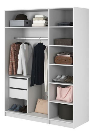 Sníte o elegantním uložení oblečení? Hledáte praktické a elegantní dotvoření vašeho šatníku? Představujeme šatní skříň – spojení stylu a praktičnosti pro váš prostor Šatní skříň je elegantním a stylovým řešením, které bude skvělou volbou i pro malé skříně. Jeho minimalistický design se perfektně hodí do moderního i klasického interiéru. Celé tělo je vyrobeno z kvalitní laminované dřevotřískové desky, která zaručuje odolnost a snadné čištění. Vnitřní prostor je navržen tak, aby se do něj vešly různé kusy oblečení a doplňků, na tyč můžete zavěsit oblečení, abyste jej udrželi v dobrém stavu, zatímco horní police vám umožní uložit méně často používané oblečení nebo doplňky prostor pro uložení drobných doplňků nebo spodní prádla, což umožňuje větší pořádek v šatníku Sloupek s policemi umožňuje efektivní třídění oblečení či doplňků. Klasická a univerzální barva dodává místnosti eleganci a styl a dokonale ladí s různými dekorativními styly. Správně nakonfigurovaný šatník vám umožní snadno se zbavit chaosu a udržovat pořádek. V této šatní skříni je funkčnost stejně důležitá jako vzhled, proto ji můžete umístit i na viditelná místa bez obav z nepořádku v interiéru. Detail produktu: korpus vyrobený z laminované dřevotřísky tloušťky 16 mm v barvě White 110 PE Kronospan, která je odolná. vlhkosti, teplotě a poškrábání, 96,5 cm dlouhá lišta umístěná ve výšce 147 cm od základny, rozměry police: šířka 46,5/96,5 cm / výška 30 cm / hloubka 55 cm, zásuvky umístěné na kulových vodítkách zajišťující volné a plynulé vysouvání, rozměry zásuvky: šířka 37 cm / výška 13 cm / hloubka 38 cm, možnost změny konfigurace uvnitř skříně ve stádiu montáže.