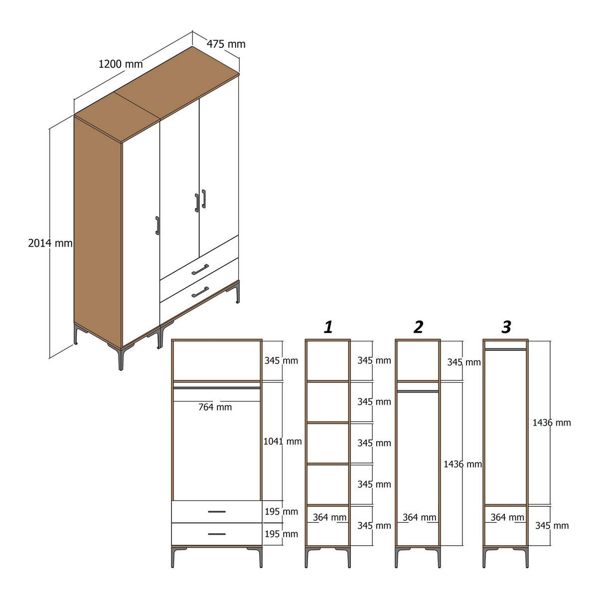 tloušťka: 18 mm, šířka: 120 cm, výška: 47,5 cm, hloubka: 201,4 cm