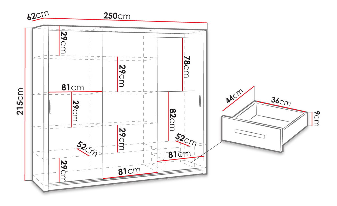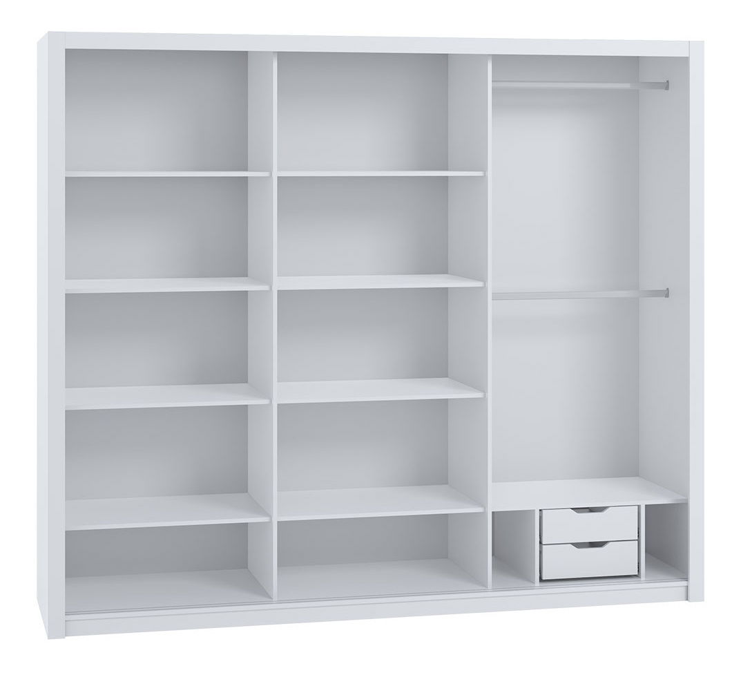ZobrazitPosuvná skříň se zrcadlem je ideální volbou pro ty, kteří hledají pohodlí a styl. vypadá zvenčí stejně dobře i díky čelům posuvných dveří. Jeden z nich má zrcadlovou tabuli, která dodatečně prosvětlí místnost. laminované desky tloušťky 16 mm, horní maskovací lišta je 12 mm, systém posuvných dveří, horní kovová vodítka, spodní plastové dráhy, zrcadlo vpředu, nádoba uvnitř šatníku není zahrnuta v ceně, můžete si ji koupit z naší nabídky Záruka: 24 měsíců
