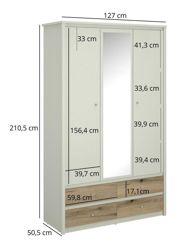 Šatní skříň Kodro 3 (kašmír + dub evoke) (se zrcadlem)