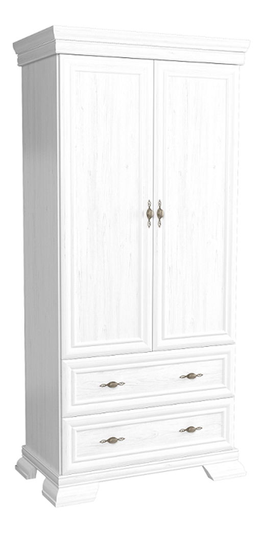 Vysoká a elegantní dvoudveřová skříň Kraz pro milovníky rustikálního stylu. Zařídíte si s ní obývací pokoje, ložnice a pracovny. V dolní části jsou dvě zásuvky. Dvířka a zásuvky mají kovové úchyty. Provedení skříně je sosna andersen.