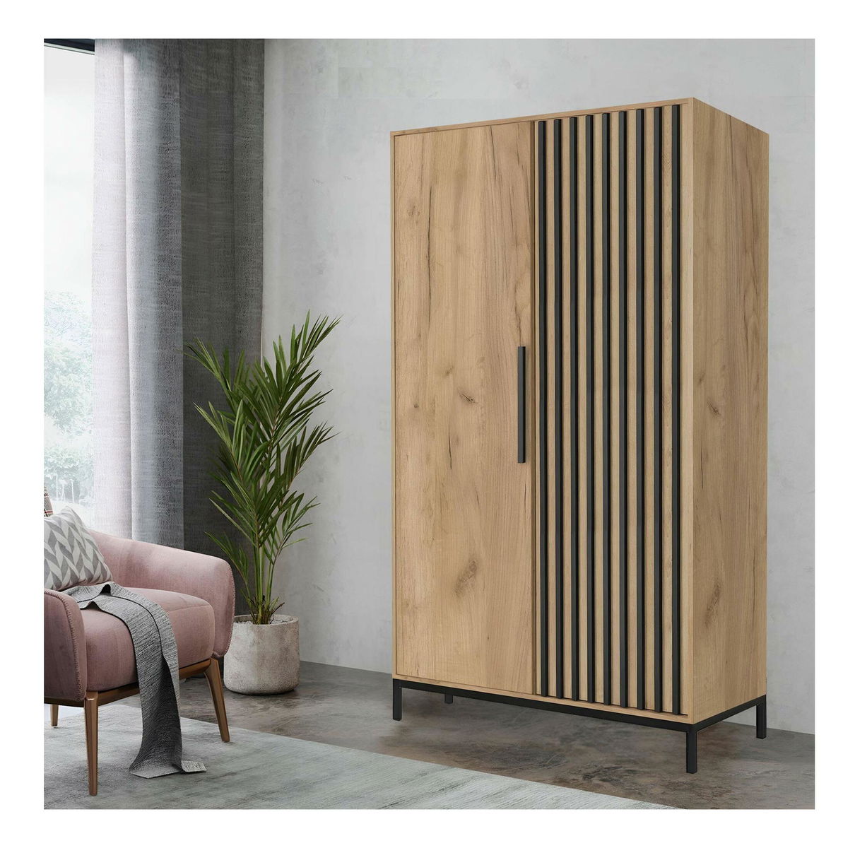 ZobrazitSkříň Lamello ve skandinávském stylu, vyrobená z laminované nábytkové desky, kombinuje funkčnost s minimalistickým designem. Ocelové nohy skříně jsou práškově lakovány v černé barvě a mají výšku 14 cm, což zaručuje dobrou stabilitu. Skříň má dvě dveře zdobené lamelami, které poskytují esteticky přitažlivý vzhled, a jsou vybaveny černými, podlouhlými plastovými úchyty pro snadné otevírání. Tento kus nábytku perfektně zapadá do moderních interiérů, kde přináší svěží a uklizený skandinávský vzhled, zároveň poskytuje dostatek úložného prostoru.