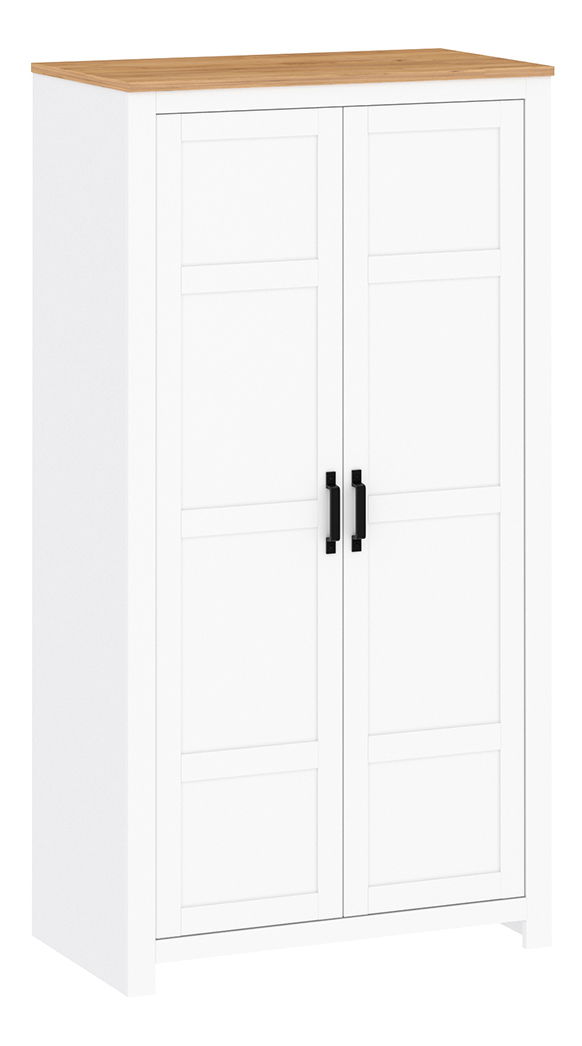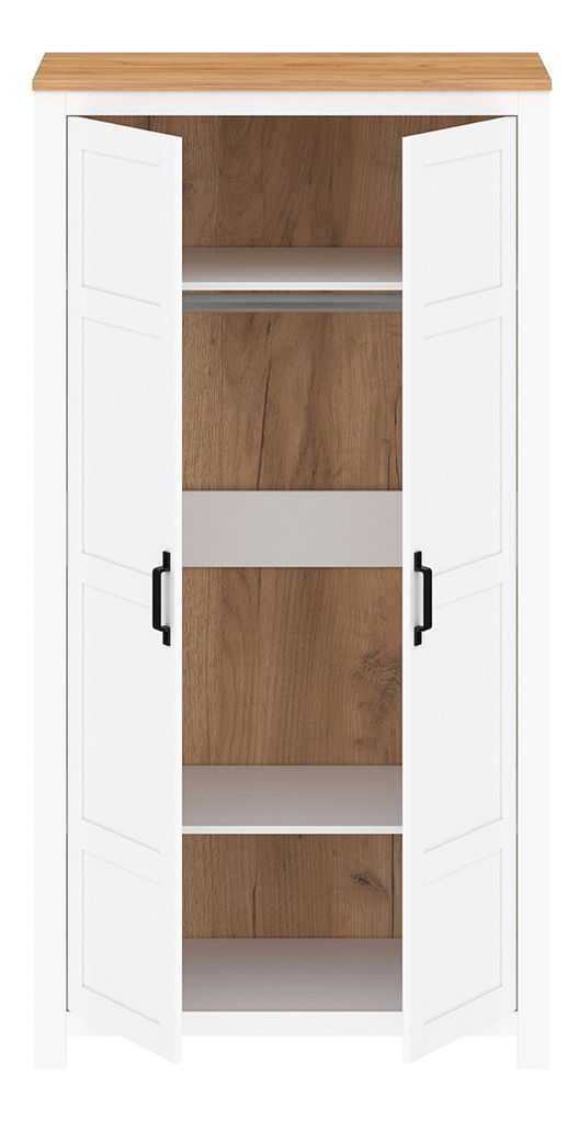 Šatní skříň Lanuelle F je výbornou volbou pro ty, kteří hledají spolehlivý a elegantní šatní prostor. S výškou 200 cm a hloubkou 58,7 cm poskytuje dostatek místa pro vaše oblečení a doplňky. Je vyrobena z DTD laminované desky s ABS hranami, a dostupná v bílém albíně nebo dubové craft zlaté barvě. S tloušťkou materiálu korpusu a vrchní desky 16 mm a 22 mm a tloušťkou dveří 19 mm je skříň pevná a odolná. Výška spodního prostoru od podlahy je 7,2 cm. Skříň obsahuje ozdobné úchyty, dvoudveřový design, věšákovou tyč a police. Dodává se v demontu. S touto skříní budete mít dokonalý prostor pro své šatstvo a zároveň si přidáte eleganci do svého interiéru.