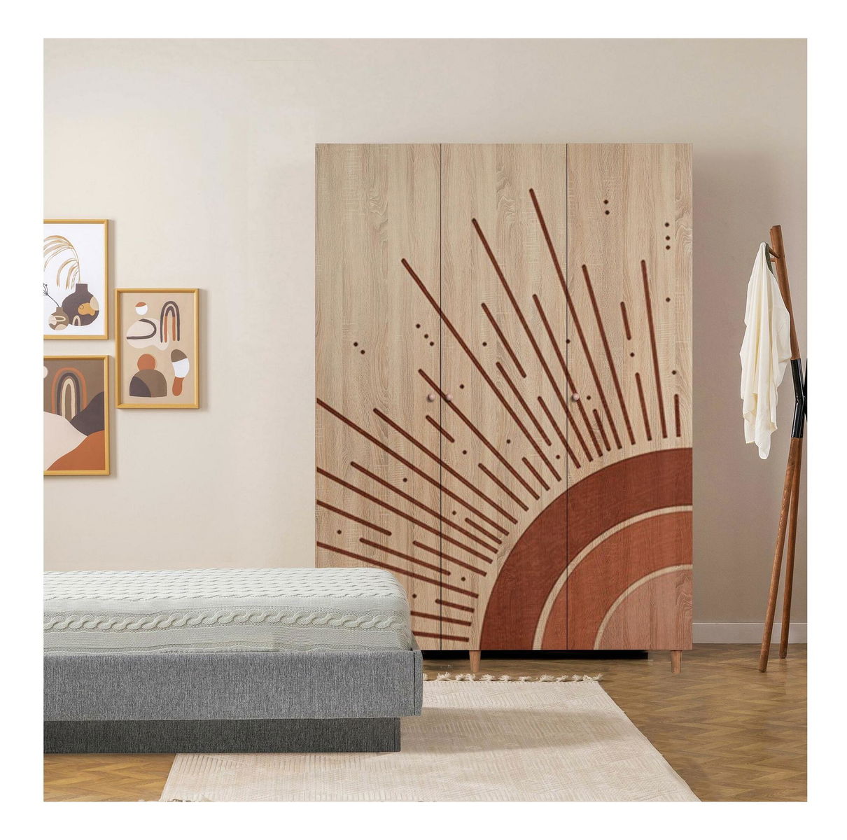 tloušťka: 18 mm, nohy z habrového dřeva rukojeti z masivního dřeva uv nátěr velikost: šířka: 135 cm, výška: 192 cm, hloubka: 52 cm, výška nohou: 10 cm