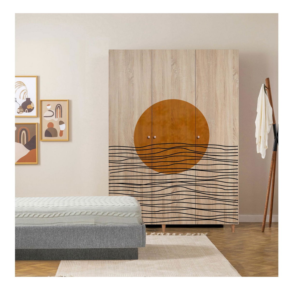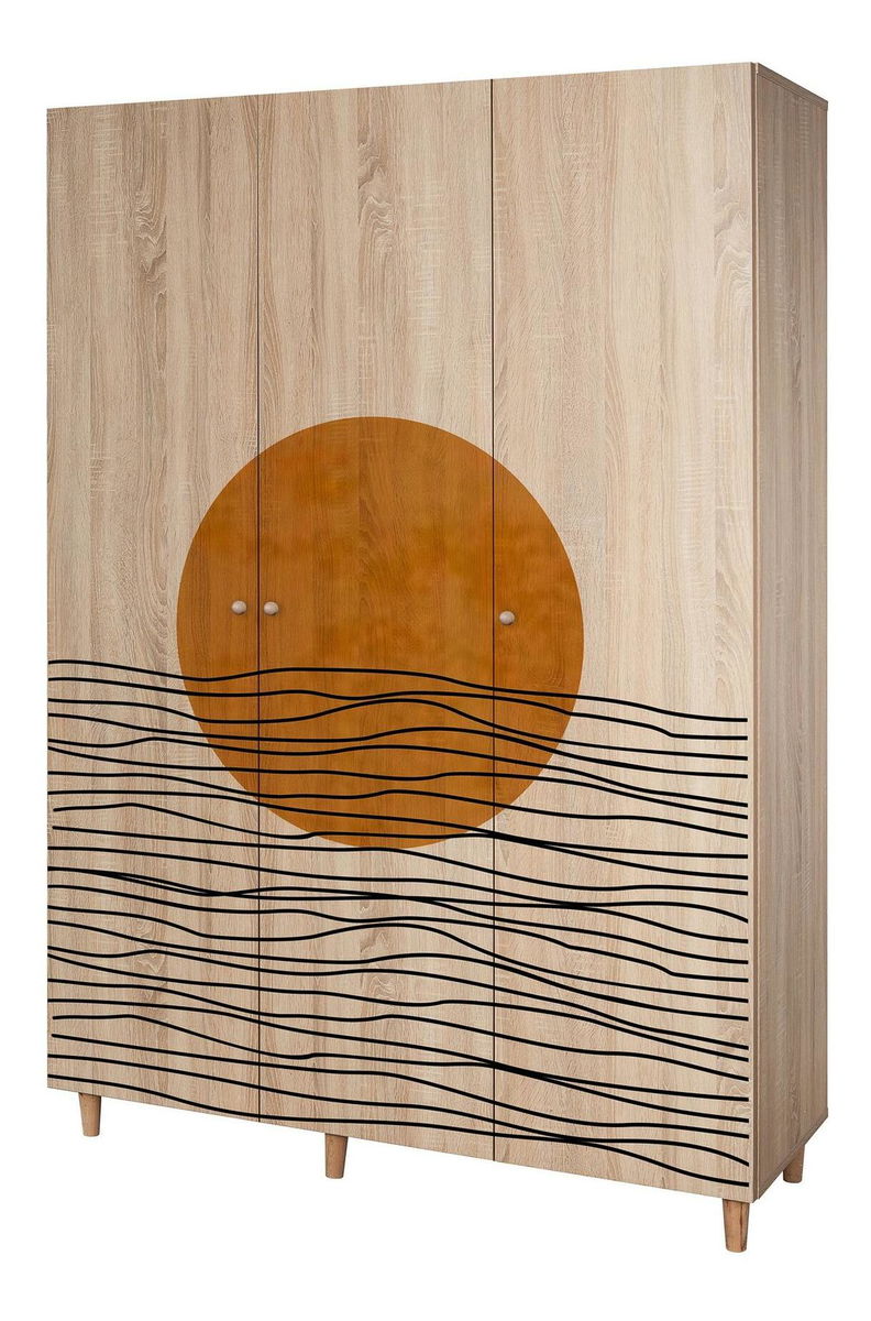 tloušťka: 18 mm, nohy z habrového dřeva rukojeti z masivního dřeva uv nátěr velikost: šířka: 135 cm, výška: 192 cm, hloubka: 52 cm, výška nohou: 10 cm