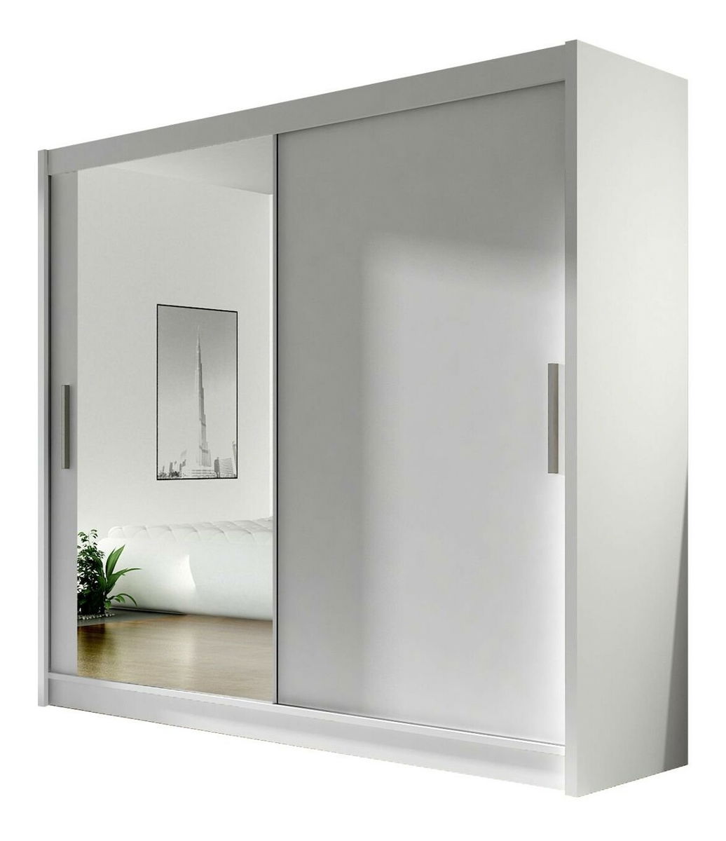 ZobrazitLena šatní skříň je kus nábytku, který vám umožní vizuálně zvětšit místnost díky velkému zrcadlu na přední straně. Systém posuvných dveří je dalším velmi výhodným řešením. Na rozdíl od křídlových dveří nezabírají při otevření místa. Jistě už můžete vidět, že skříň je kus nábytku, který vám ušetří místo v místnosti a vytvoří smysl pro prostor.