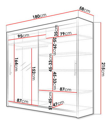 ZobrazitŠatní skříň je ideální volbou pro ty, kteří hledají pohodlí a styl. Londyn šatní skříň je kus nábytku, který vám umožní vizuálně zvětšit místnost díky velkému zrcadlu na přední straně. Systém posuvných dveří je dalším velmi výhodným řešením. Na rozdíl od křídlových dveří nezabírají při otevření místa. Jistě už můžete vidět, že londýnská skříň je kus nábytku, který vám ušetří místo v místnosti a vytvoří smysl pro prostor. Rozměry: šířka: 180 cm, výška: 215 cm, hloubka: 57 cm provedení: Laminovaná deska 16 mm, systém posuvných dveří, hliníkové vodiče typu Micra od polské společnosti Sevroll, jedno boční zrcadlo stříbrné rukojeti, módní barvy, hrany zakončené ABS dýhou, možnost za příplatek (15 variabilních barev + dálkové ovládání) Záruka: 24 měsíců