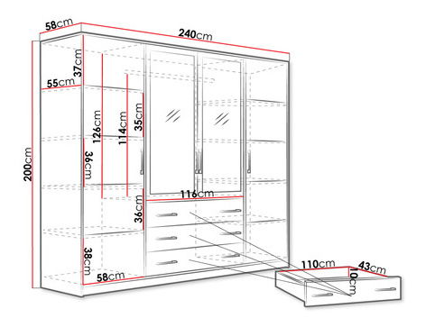 ZobrazitŠatní skříň je ideální volbou pro ty, kteří hledají pohodlí a styl. Šatní skříň Lily 240 se šuplíky je skutečným skvostem mezi nábytkem pro ukládání oblečení a doplňků. Nabízí šířku až 240 cm. Lily poskytuje nejen velkou kapacitu, ale také úžasnou funkčnost a decentní a elegantní vzhled. Díky množství úložných prostor se do šatníku vejdou až dvě osoby. Je vybavena také zrcadlem, které je ideální před odchodem do práce. Moderní šatní skříň Lily 240 je kombinací jedinečného stylu, funkčnosti a odolnosti. Určitě vám bude sloužit dlouhá léta! Nábytek zajistí nejen pořádek a organizaci, ale dodá i svěžest a jemnost každé místnosti. Rozměry: šířka: 240 cm, výška: 200 cm hloubka: 58 cm Provedení: tloušťka laminované desky 16 mm, PCV lemování hran, GTV panty, válečkové výsuvy, rukojeti: černý plast, zrcadlo na přední straně, uvnitř skříně: věšáková tyč a police,