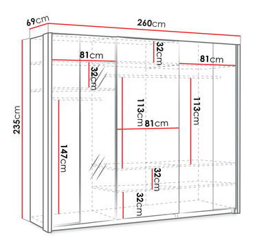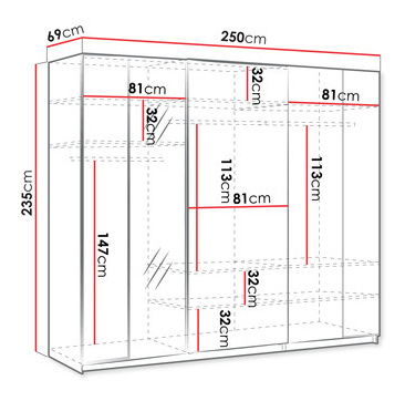 ZobrazitŠatní skříň je ideální volbou pro ty, kteří hledají pohodlí a styl. Moderní a především navržená tak, aby usnadnila skladování oblečení, šatní skříň Maxi 3D 250 cm MX06 je nezbytným vybavením každé domácnosti. Díky pečlivě uspořádanému interiéru poskytuje dobré místo pro uložení oblečení, obuvi a doplňků. Důmyslně uspořádané police umožňují také uspořádání kufrů, tašek a různých typů krabic. Zvýšený počet tyčí na zavěšení oblečení na ramínka pomáhá chránit velké množství oblečení před nadměrným pokrčením. Takto řešená šatní skříň je pokladem v ložnici, předsíni, ale i ve výklenku vytvořeném v úzké chodbě. Rozměry: šířka: 250 cm, šířka s LED osvětlením (dodatečná možnost): 260 cm výška: 235 cm, hloubka: 69 cm provedení: laminovaná dřevotříska tloušťky 16 mm, ABS hrana, zadní část nábytku je vyrobena z HDF desky tloušťky 3 mm, ceně je samozavírač, který zabraňuje úderům při zavírání, uvnitř jsou kolejnice a police, 3 mm silné zrcadlo na přední straně, bílé LED osvětlení jako doplňková možnost za příplatek Záruka: 24 měsíců