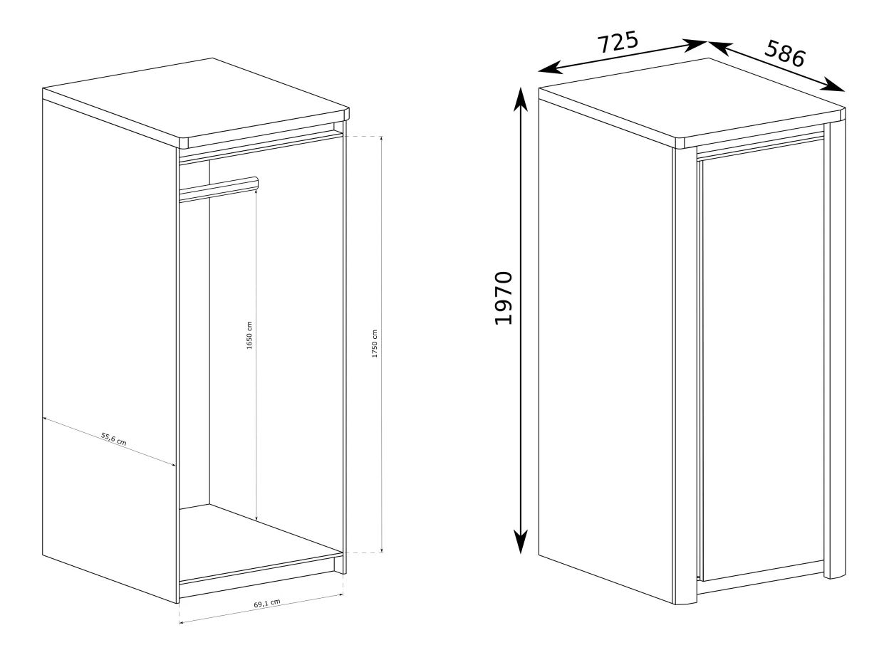 Jednoduchá velká jednodveřová šatní skříň s bílou lesklou přední plochou. Má tyč na šaty, na kterou si můžete zavěsit košile, šaty nebo zimní kabáty. Skvělý doplněk k nábytku, který už v pokoji máme. Šatní skříň je široká téměř 73 cm a lze ji umístit ke komodě nebo vitríně v místnosti.