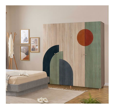 tloušťka: 18 mm, nohy z habrového dřeva rukojeti z masivního dřeva uv nátěr velikost: šířka: 180 cm, výška: 192 cm, hloubka: 52 cm, výška nohou: 10 cm