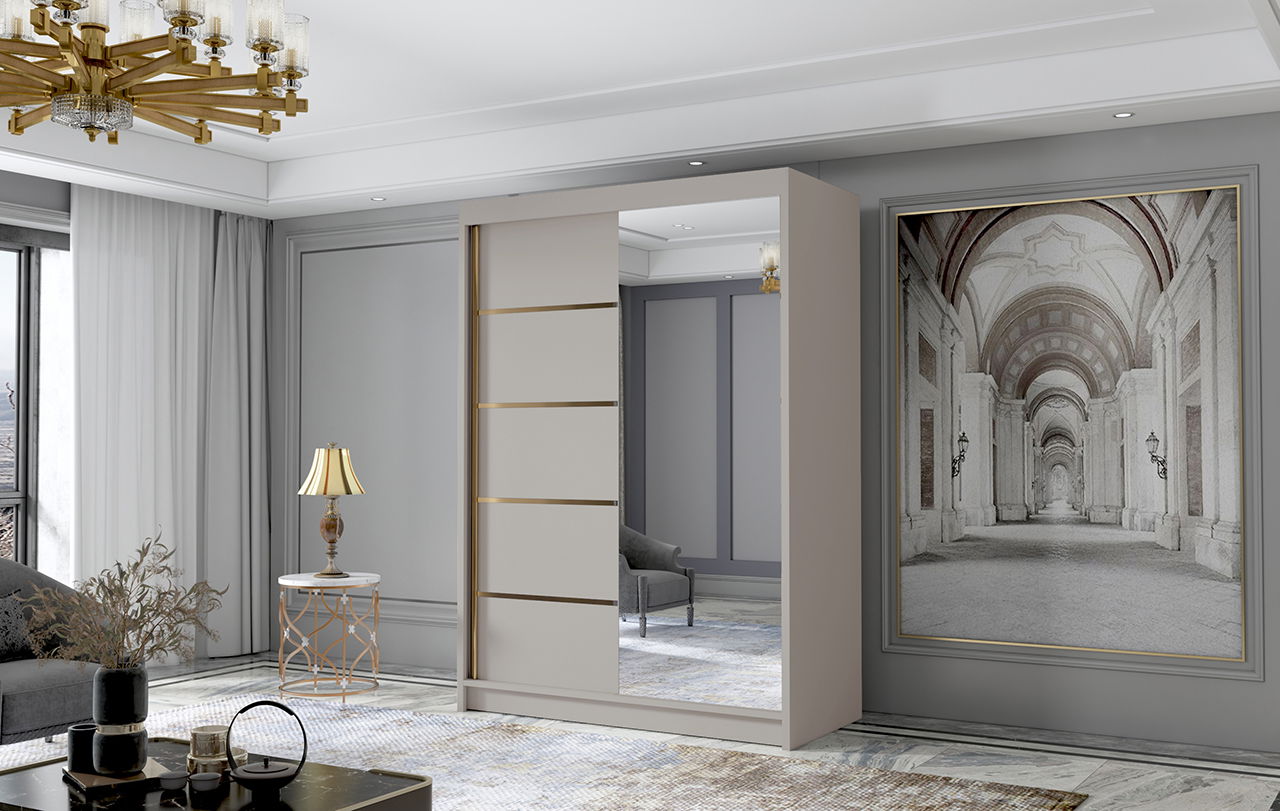 ZobrazitŠatní skříň ocení ti, kteří si nepotrpí na design, ale hledají především praktičnost nábytku. Skříň má praktické posuvné dveře a ukrývá v sobě dostatečné množství úložného prostoru, ať už pro vaše oblečení, povlečení nebo doplňky. V levé části se nachází věšáková tyč a v pravé části se nacházejí police. V horní části se nachází další úložný prostor. Skříň je v pěkném bílém provedení.
