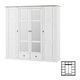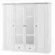 Čtyř-dílná rozměrná šatní skříň. 2 prostřední dřevě jsou zvenku opatřeny zrcadlem, které má 2 příčné desky umisťuje vodorovně. Tyto dřevě jsou věšákovou typu a mají pouze jednu polici v horní části. Pod zrcadly jsou umístěny vedle sebe 2 mělké zásuvky. Dvířka po stranách mají uvnitř police.