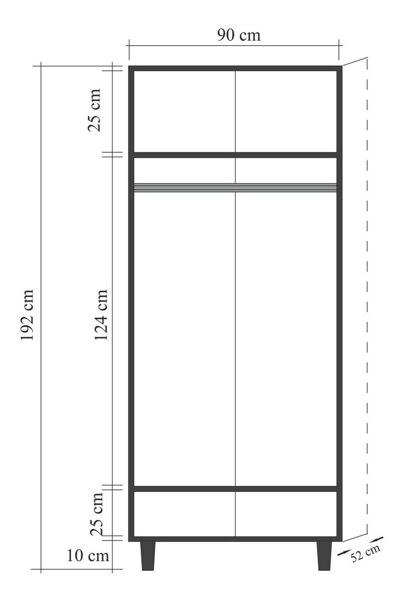 šířka: 90 cm, výška: 192 cm, hloubka: 52 cm, výška noh: 10 cm