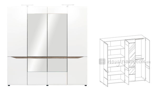 Šatní skříň Lynna LI 10 v dubovém provedení Sonoma Truflový a bílém lesku je ideálním řešením pro každého, kdo hledá praktické a moderní úložné řešení pro své oblečení a doplňky. S výškou 201 cm a hloubkou 56 cm nabízí dostatek místa pro zavěšení oděvů na ramínka a umístění ostatních věcí na poličky a do zásuvek. Skříň se skládá ze čtyř dílů, z nichž dvě prostřední dveře jsou vybaveny zrcadlem, které vám ušetří prostor a zároveň umožní rychlé prověření, jak vypadáte. Šatní skříň Lynna LI 10 je vyrobena z kvalitního materiálu a její elegantní design dodá vašemu pokoji stylový vzhled.